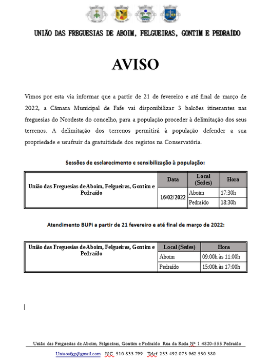 © 2026 União das Freguesias de Aboim, Felgueiras, Gontim e Pedraído. Todos os direitos reservados | Termos e Condições